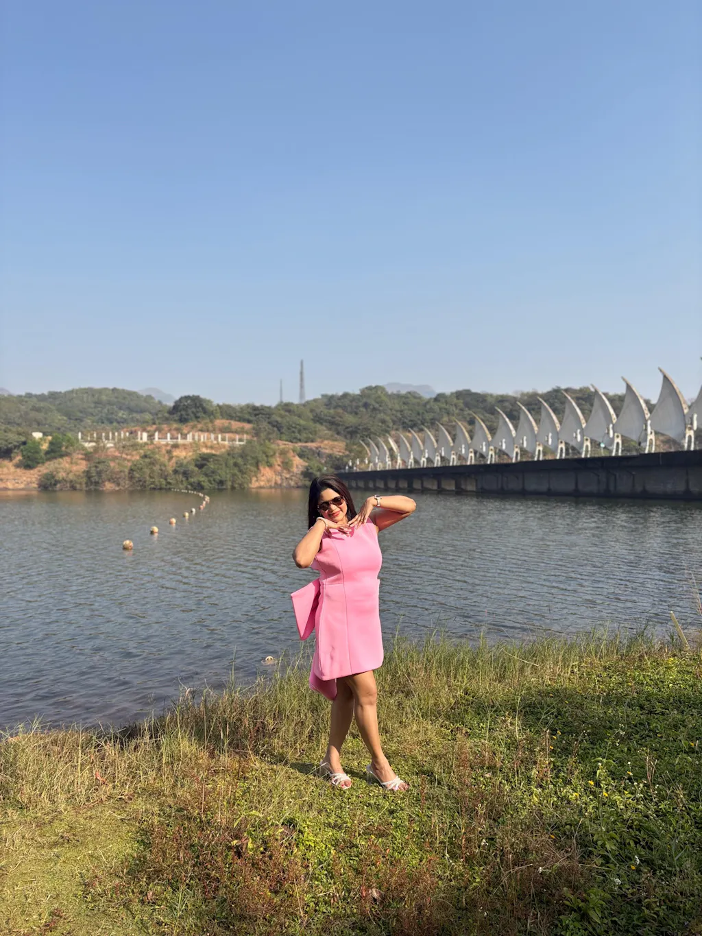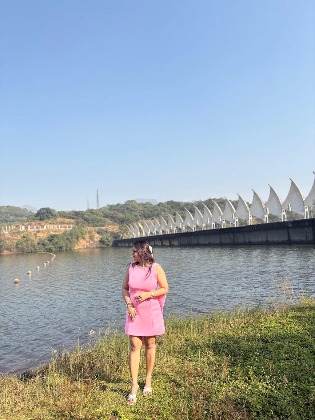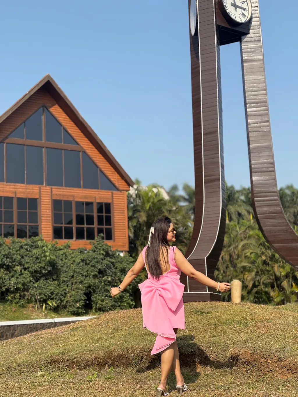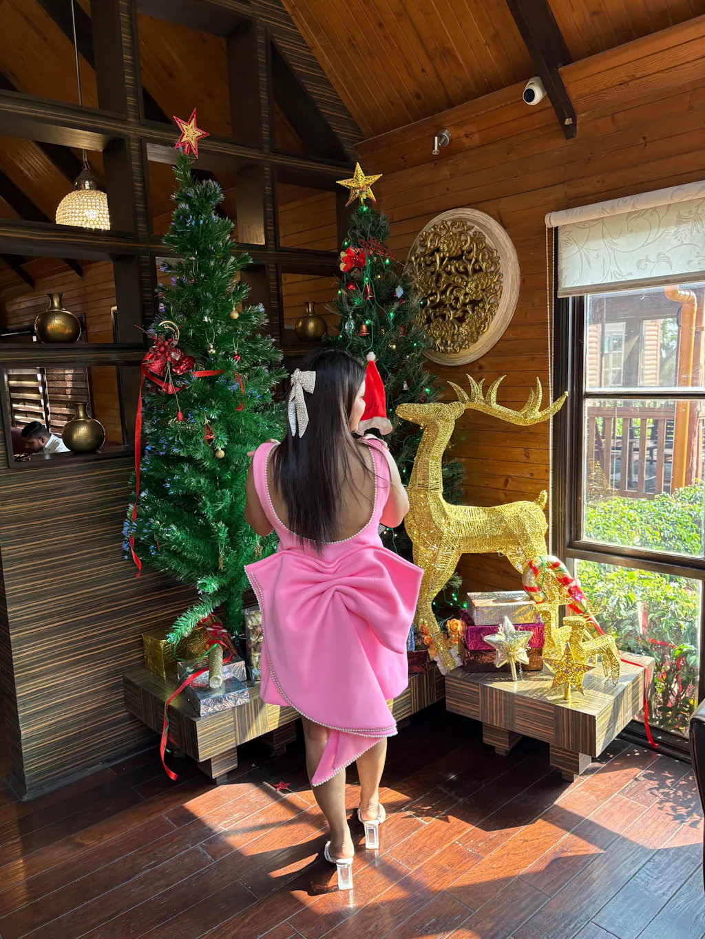 Pankh Tansy Scuba Pearl Detailed Big Back Bow Party Wear Dress
