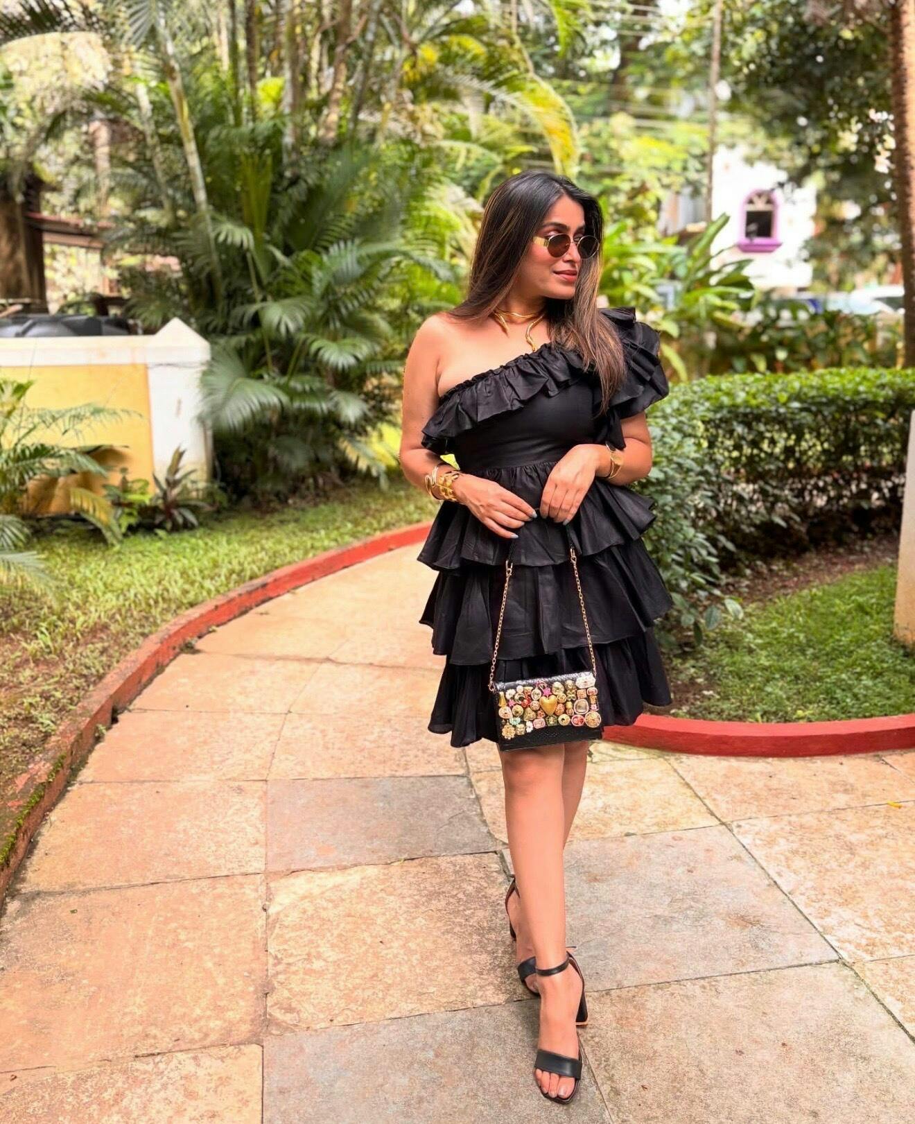 Pankh Rebecca Cotton Frill One Shoulder Dress
